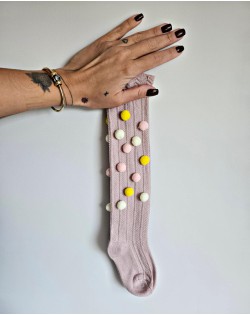 Rausvos kojinės iki kelių...